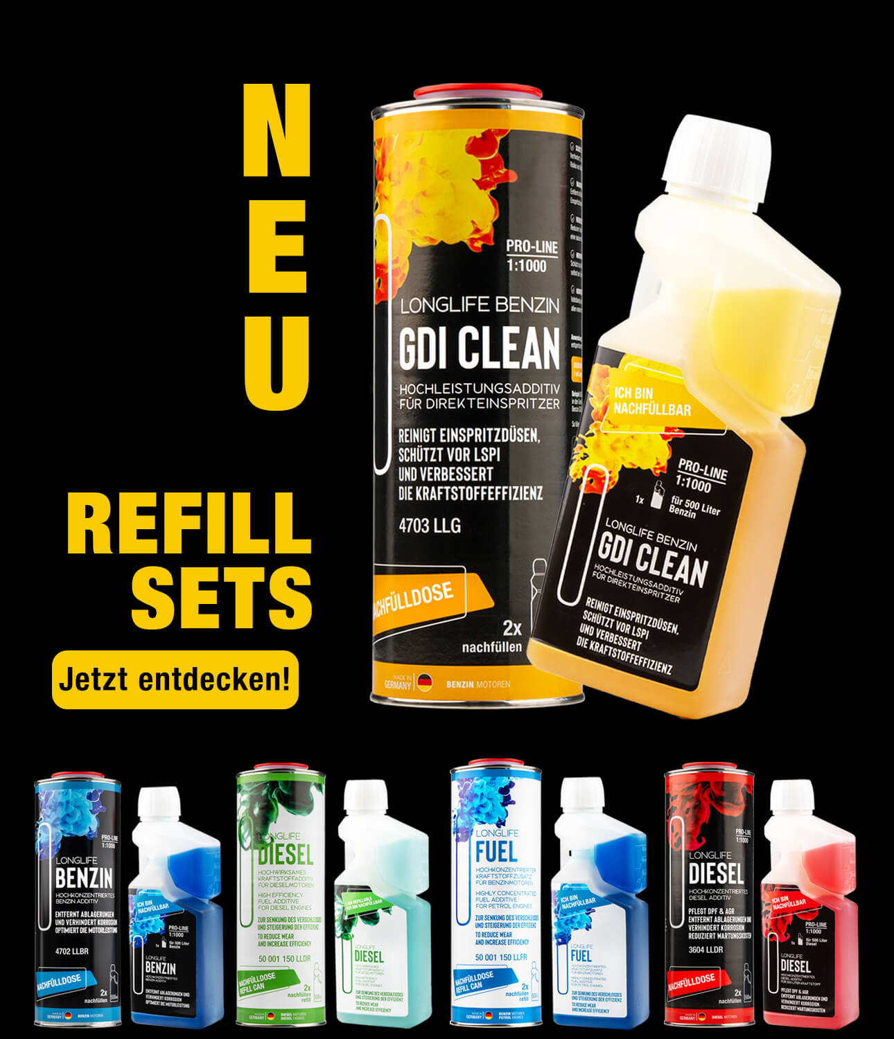 Longlife BENZIN GDI CLEAN Pro-Line - speziell für Direkteinspritzer-Motoren, Kraftstoffadditiv, Refill-Kit 1 x 500ml + 1 x 1.000ml